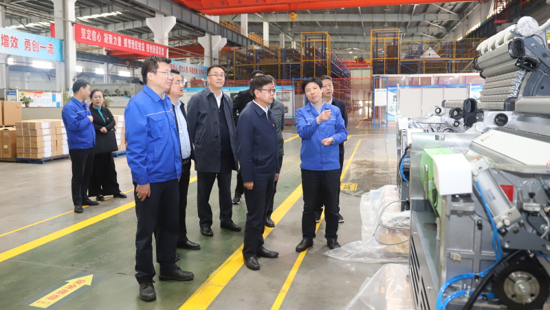 在恒天重工,指导组一行参观了所属华萦公司及总部非织造布事业部、棉纺事业部、加工事业部、化纤事业部车间等生产现场,详细询问企业生产经营情况和装备制造情况,召开座谈会听取国机集团纺机高质量发展战略定位、中国恒天振兴纺机三年行动计划、恒天重工纺机装备发展等情况介绍。